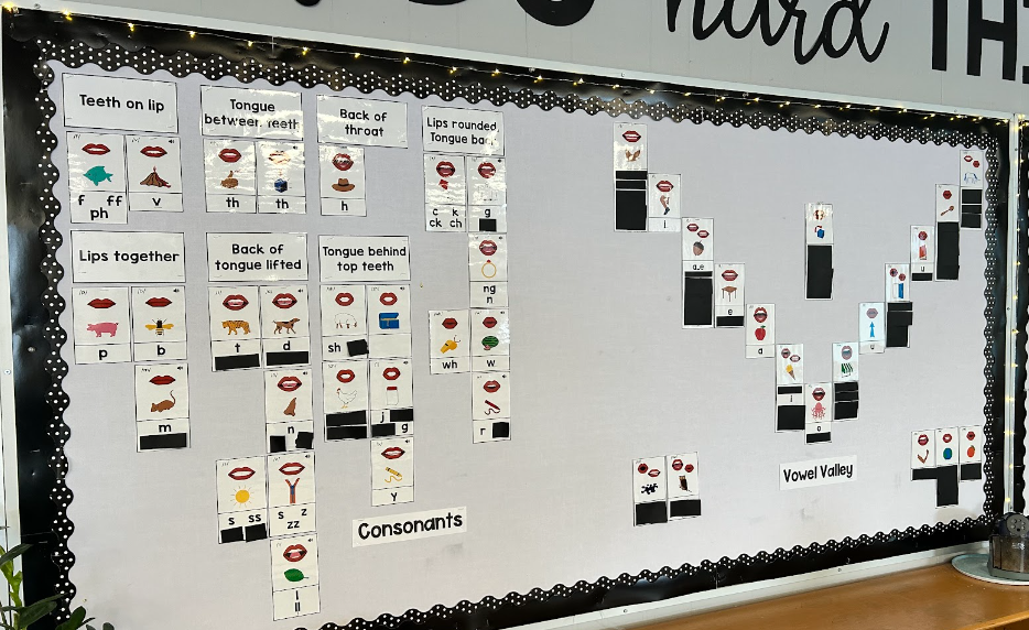 I also wanted to note the phonics display bulletin board in this classroom. It is a great visual for students to help with sounding out and pronouncing sounds. I really liked how this teacher covered up the ones they have not gotten to yet as I believe it helps students not get confused or overwhelmed.